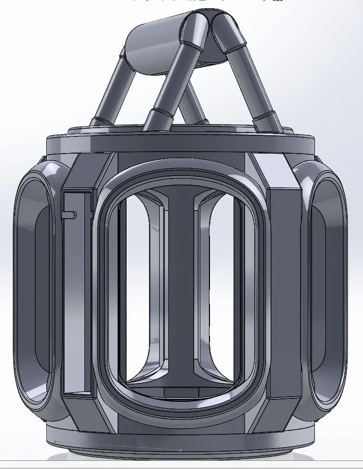 After function studies and aesthetic models I developed these models that combined the two. The top lid of the box twists-to-lock in place, preventing accidental opening. The slots on the side are designed to accommodate extendable feet that can fold out for support on rough terrain, and the bottom removable cap is magnetic and, magnetically anchoring the box to surfaces, and prevent nuts and bots from floating away in microgravity.